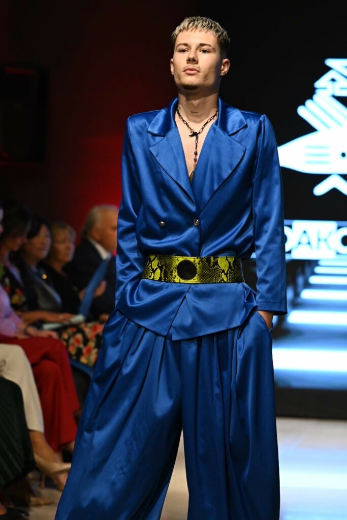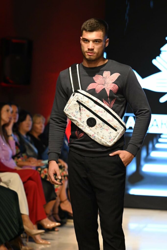 Žena obavijena narančastim velom i stegnuta kaiševima simbolizira tišinu, kontrolu i nevidljive okove, dok cvijet u njenoj ruci eksplodira kao znak prkosa, nade i novog početka, koji je potom položila na pistu kao znak otpora i podrške. Ovo nije samo odjevna kombinacija – ovo je modni performans, jasna poruka da nasilje mora prestati, a glas svake žene mora biti slobodan i vidljiv.