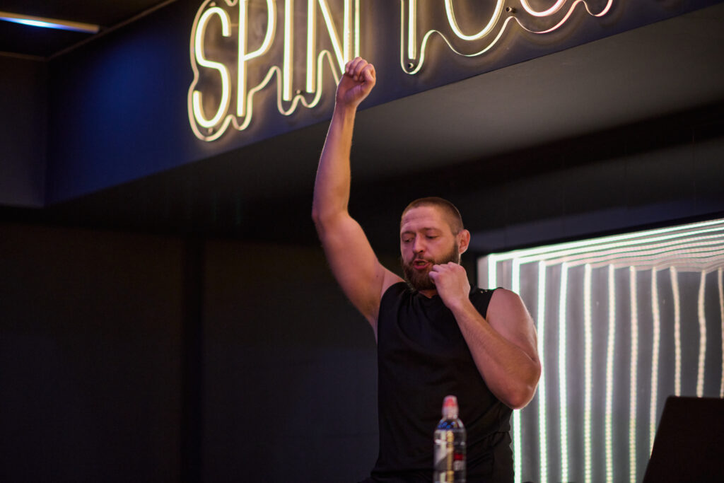 Svaki trening traje 45 minuta i odvija se u polumraku, uz muziku i orkestrirajuće svjetlosne efekte koji prate ritam pokreta. Instruktor vodi grupu kroz izmjene tempa i otpora na biciklima, stvarajući osjećaj vožnje kroz različite terene – od laganog ritma do snažnih sprintova i uspona. Cijelim treningom dominira energija, ritam i fokus, a vožnja završava osjećajem potpunog oslobođenja i naletom endorfina koji traje satima.